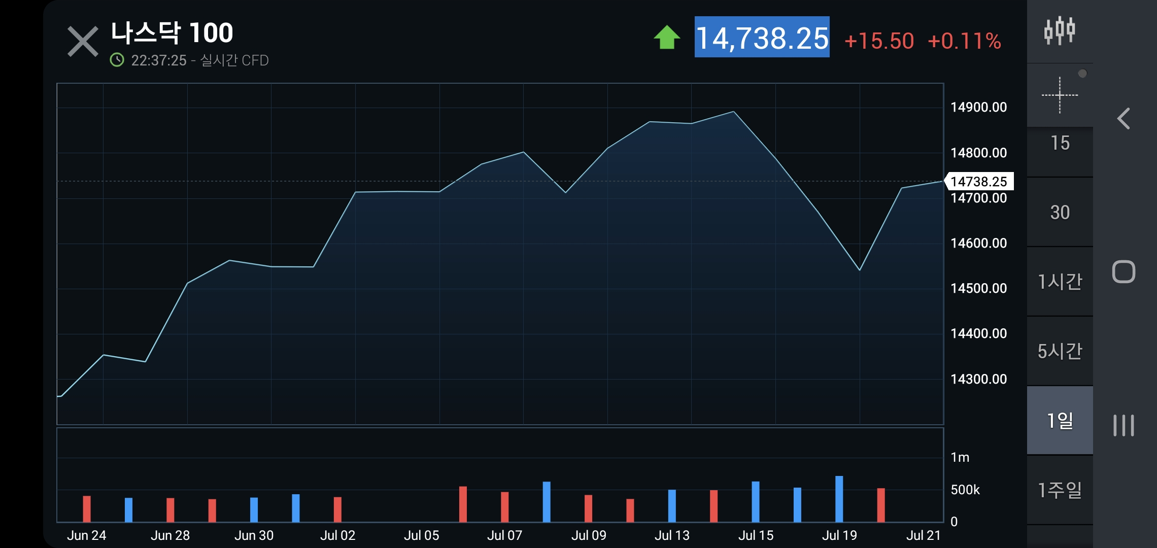 나스닥은 현재 실적 발표 시즌이기에 강한 변동성을 띄고 있고