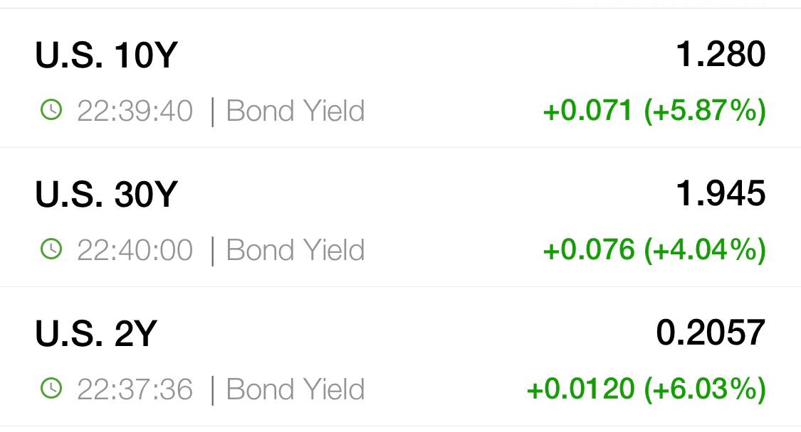 C. 미국채가 바닥을 쳤는지 상승하고 있습니다