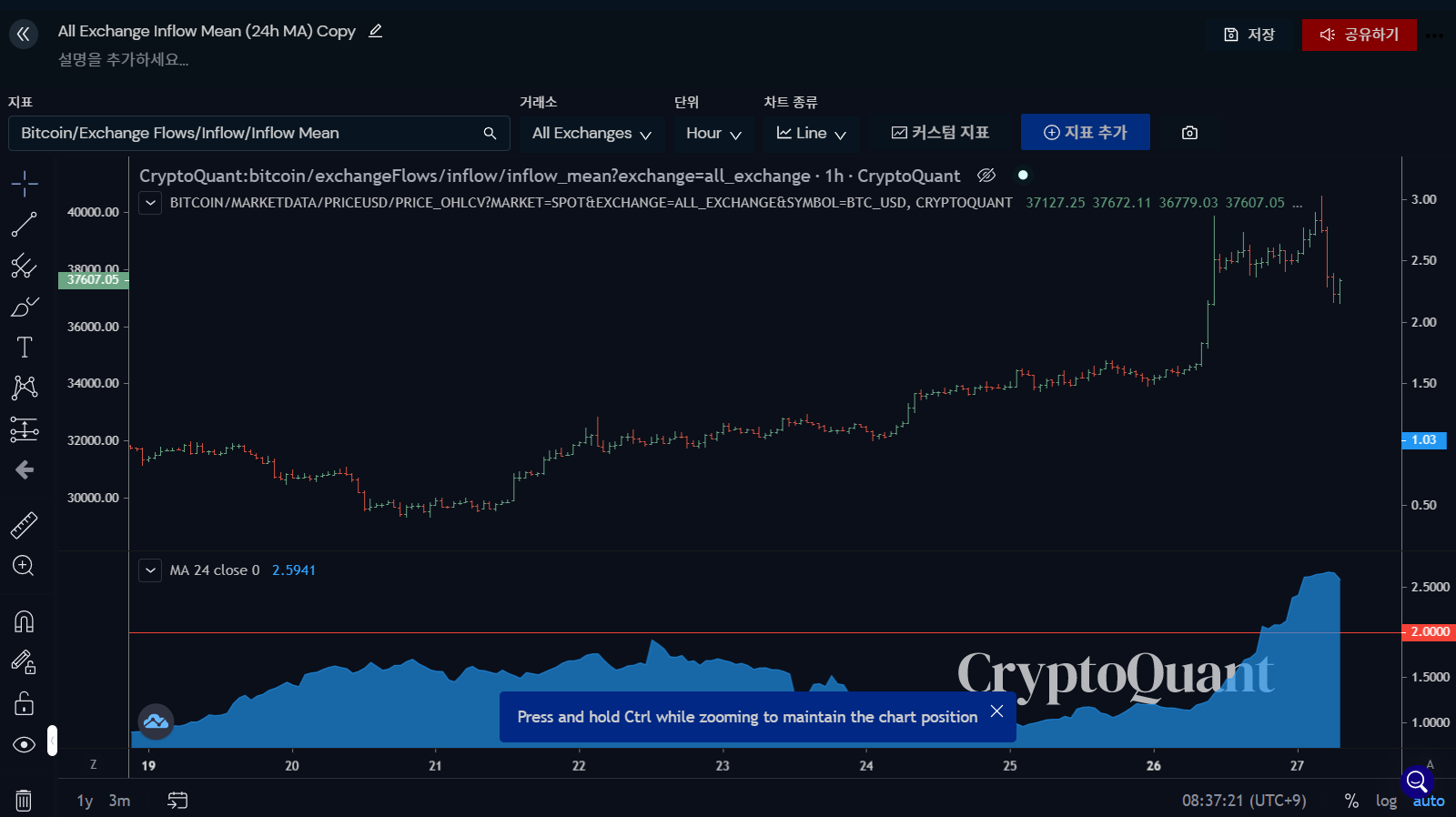 비트코인 평균이동선입니다