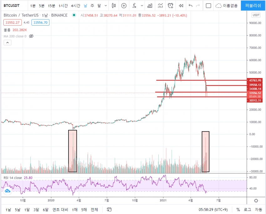 일단 비트코인은 현재 엄청 위험한 구간에 진입해 있습니다.